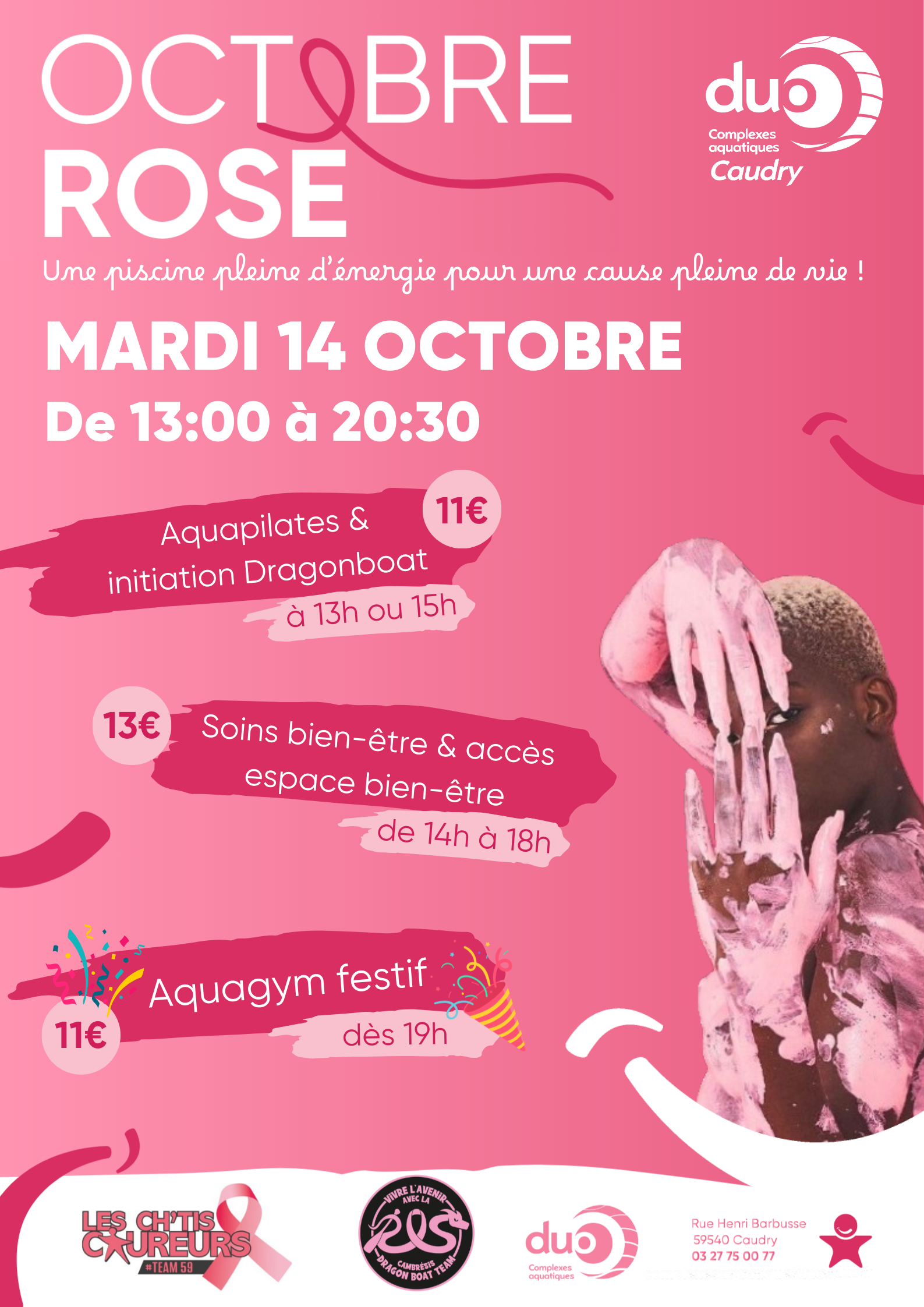 - Le complexe aquatique de Caudry propose plusieurs évènements le Mardi 14 octobre 2025 de 13h à 20h30 (aquapilate adapté, initiation dragonboat, accès à l’espace bien-être, etc.) : Cliquez ici pour de plus amples informations