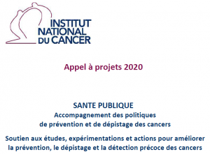L’Institut national du cancer (INCa) publie son appel à projets 2020 de soutien aux études, expérimentations et actions pour améliorer la prévention, le dépistage et la détection précoce des cancers (DEPREV) :