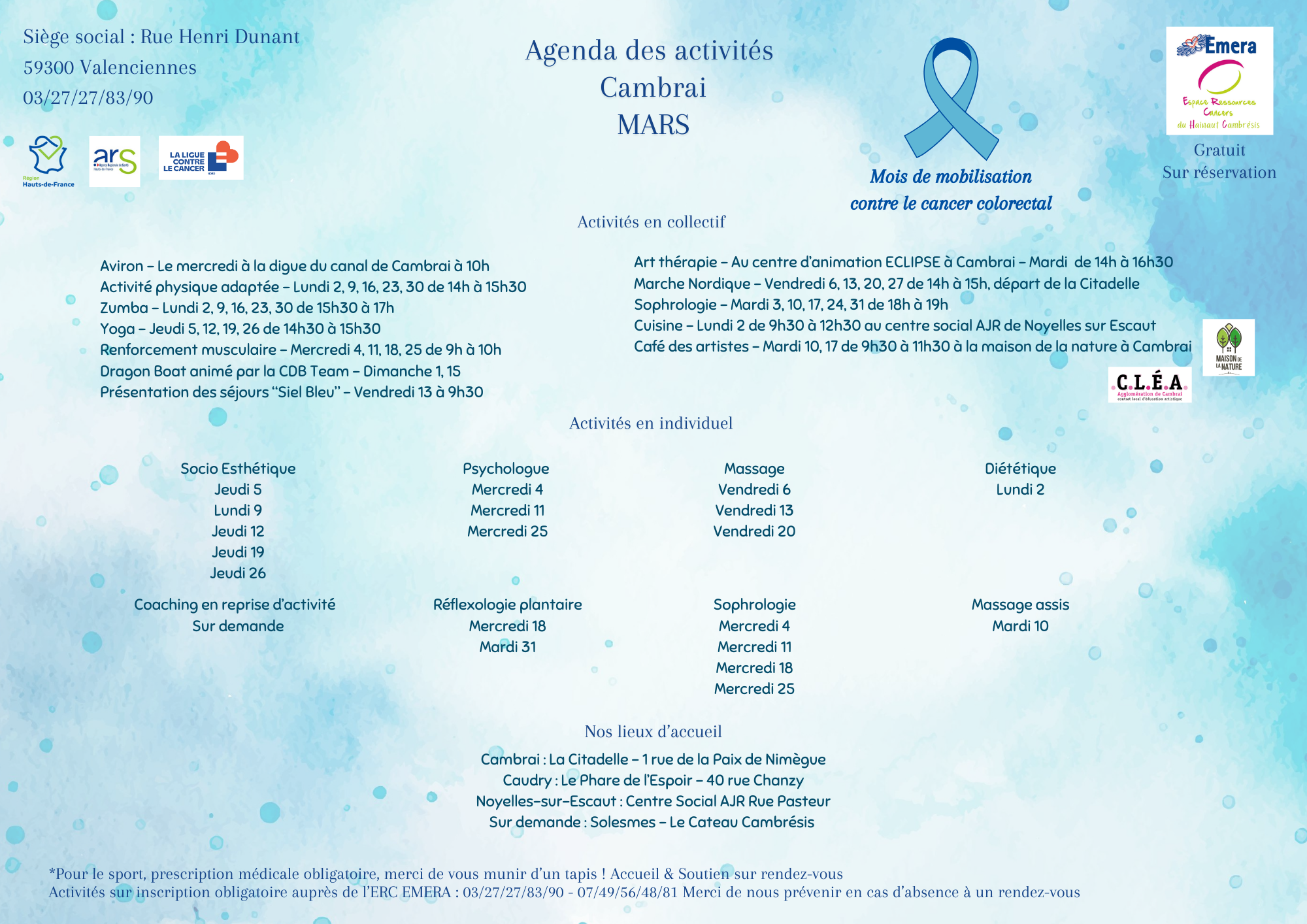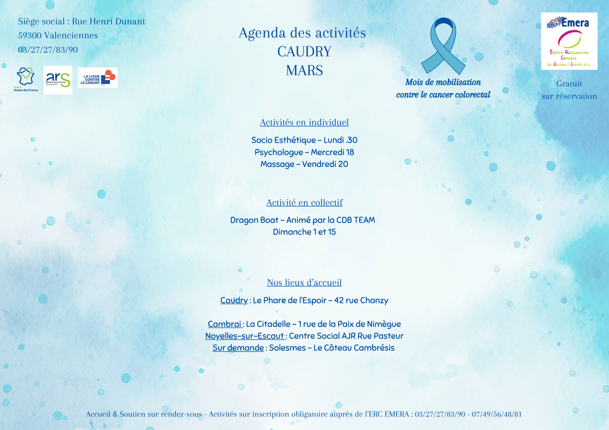 Il est également mobilisé dans la prévention et l’information autour des dépistages du cancer en accompagnant des structures ou en organisant des évènements de sensibilisation.