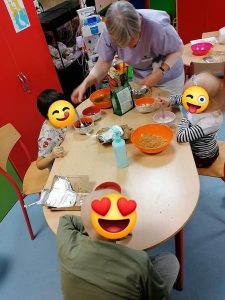 A la cuisine thérapeutique du CHU puis repas partagé dans la salle de jeux du service